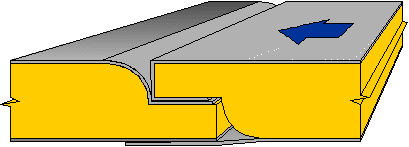 Инструмент с красным цветом. Выполняется "замочная" резка для складывания стенок 90o