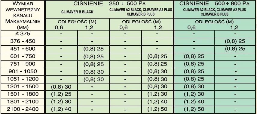 Высокая жёсткость плит Climaver позволяет выполнять длинные отрезки воздуховода без укреплений. Однако при более высоком давлении и больших сечениях воздуховодов необходимо применение укрепления.